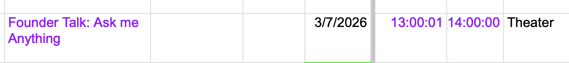 In order to force the session Recording and ... to appear before Founder Talk ... , I can change the start times: