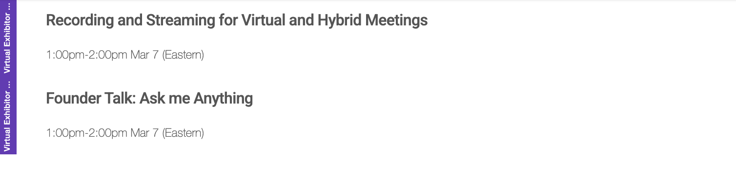 If several sessions or presentations start at the same time, and you cannot sort them by session number or adjust the titles to control the order, you can use the seconds in the start time to set the order instead.